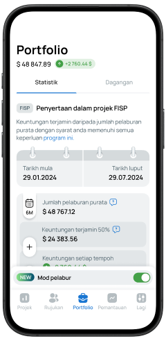 FISP investments are designed for a 6-month term. During the first 6 months of trading, the guaranteed profit is at least 50% of the invested funds. After the first 6 months, the program can be extended for another 6-month period, during which the guaranteed return will be 15%.