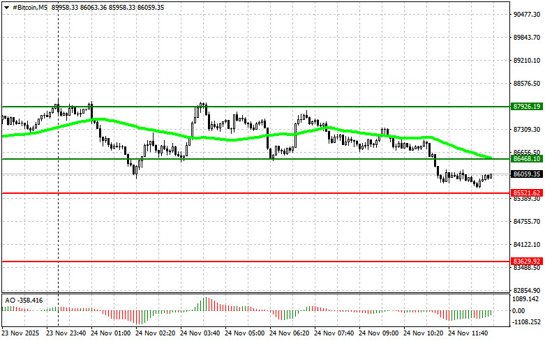 Сценарий №2: покупать биткоин можно от нижней границы $85 500 при отсутствии рыночной реакции на ее пробой в обратную сторону к уровням $86 400 и $87 900.