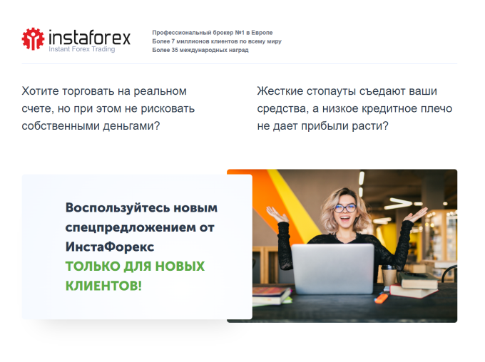 Клиентам ИнстаФорекс предоставляется исключительная возможность увеличить депозит за счет брокера, просто открыв реальный торговый счет и заполнив заявку на прибавление 55% от внесенной на него суммы.