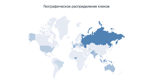 - Статистика географического распределения кликов показывает страны с наибольшим количеством переходов в течение всей партнерской деятельности.