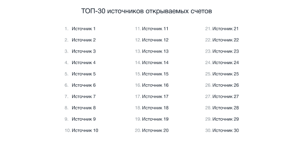 - Это список интернет-ресурсов, расположенных по количеству открытых счетов при переходе с указанного веб-сайта по вашей партнерской ссылке.