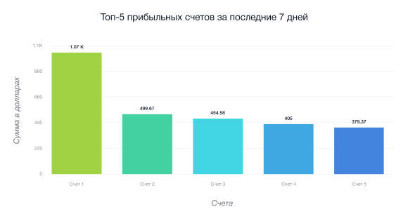- В этом разделе легко отслеживать общую статистику по открытым счетам — выделить успешные месяцы, вовремя заметить спад в привлечении клиентов и изменить маркетинговую стратегию, если старая тактика уже не приносит прежнего результата.