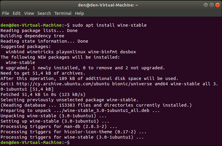 sudo apt-get install --install-recommends winehq-stable