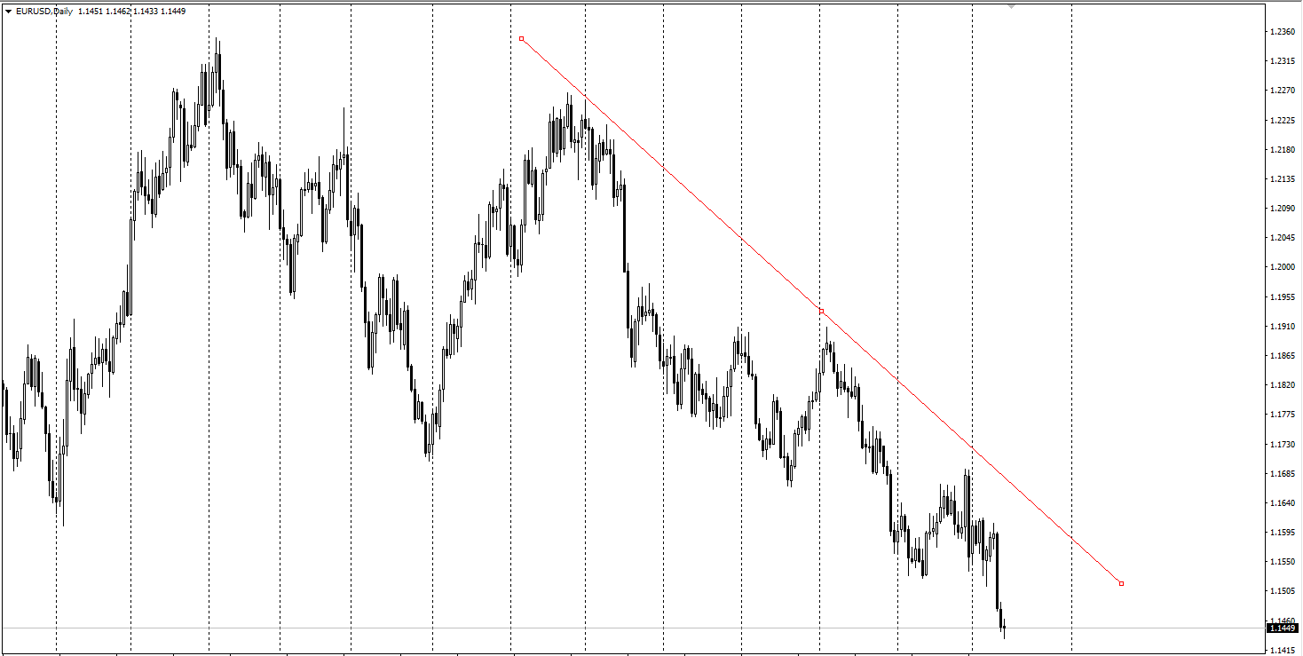 Đặc điểm quan trọng nhất của đường xu hướng là giá trị góc của nó. Nó cho thấy lực lượng chi phối thị trường.