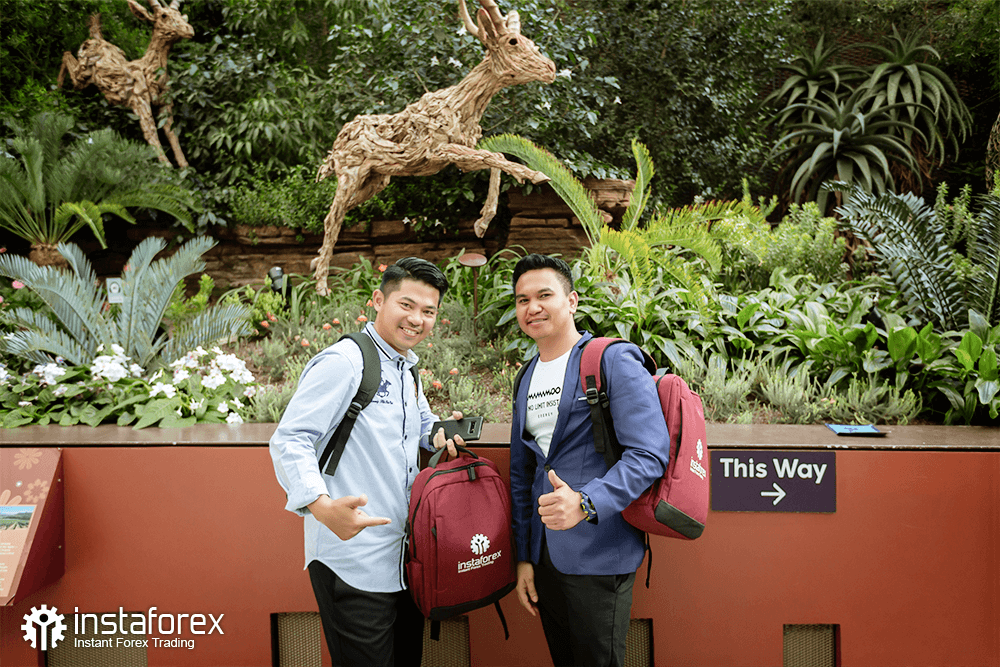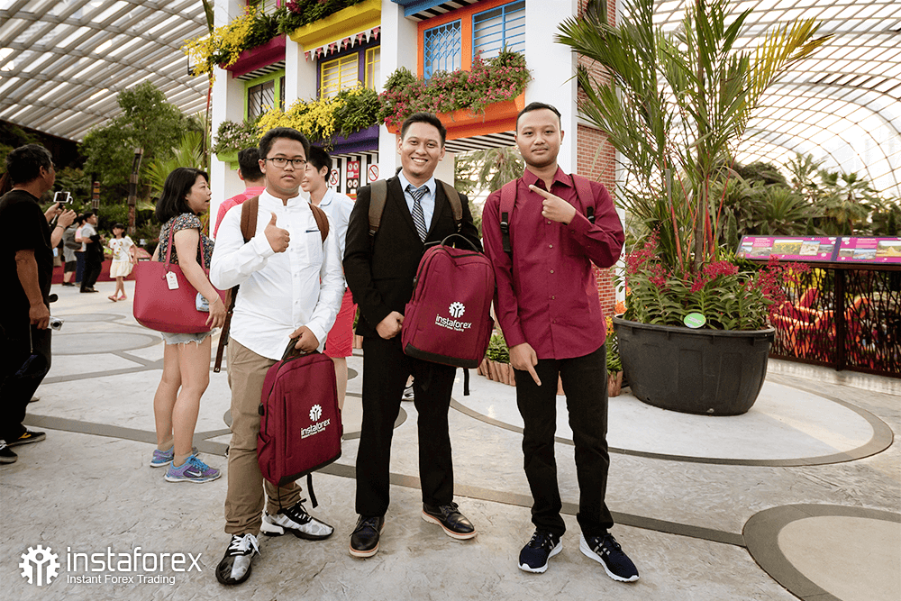 Kết thúc phần chính của sự kiện, các khách mời đã nhận được những bộ quà tặng lớn. Tiếp theo, các vị khách đã đến thăm một trong những điểm thu hút chính của Singapore - công viên thiên nhiên Gardens by the Bay, nơi mà họ đã tận hưởng vẻ đẹp của thiên nhiên kỳ lạ và một buổi trình diễn ánh sáng âm nhạc, Garden Rhapsody. Các đối tác của InstaForex có thể dễ dàng phân biệt được bằng ba lô mang thương hiệu với logo của công ty - một trong những món quà từ bộ quà tặng mà chúng tôi đã chuẩn bị kỹ lưỡng cho họ.